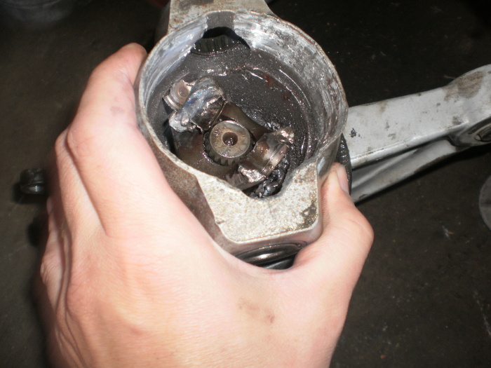 Tak je to rozebrane a ja mam narozdil od Bohumila v haji ten spodni kriz.Rozlomila se cela ta klec.Jak to tam chvili litalo navolno,tak to poskodilo i levej cep,co je na nem to jehlovy lozisko a konec ty rozvodovky je taky lehce omletej,ale to by nicemu vadit nemelo.