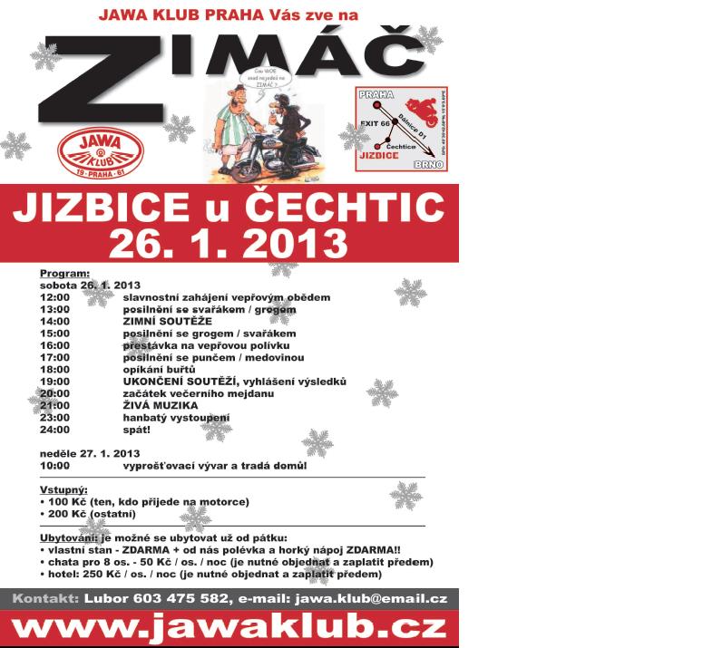 vážíme si toho, že se účastníš akcí, které náš klub pořádá. A protože máme chuť neustále vymýšlet nové věci a akce, abychom Tebe i sebe bavili, napadlo nás, po vzoru západních sousedů, uspořádat Zimní motocyklový sraz - ZIMÁČ.