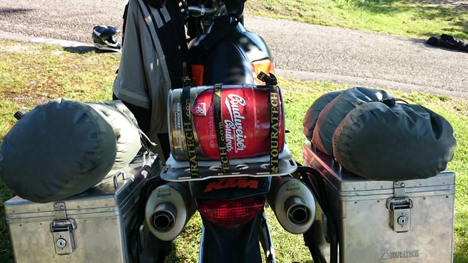 jak muzete videt, je to velmi chytre vymyslene hard-cestovatelske offroad vybaveni. samozrejmosti jsou ruzne velikosti z duvodu vycnivajiciho vyfuku. montaz je ovsemze variabilni, viz foto. material je volen s prihlednutim ke snadne oprave v dalekych koncinach. specialni vnitrni prostor na lahve od vina. poctiva rucni prace!