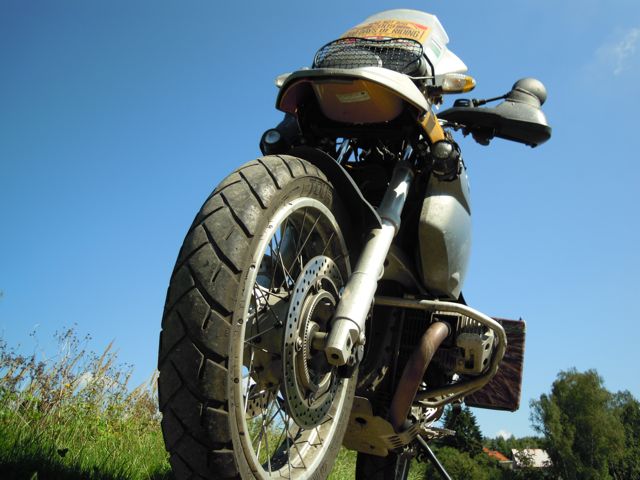 Z toho 19000 km na cestě v plný náloži. Huštění standardní podle zátěže. Měněno doma ručně v rámci tréninku a nahozeno zadek panákem, předek CO... obojí funguje... Váhu motorky nevím - nezajímalo mi to moje startovní váha 82 kg.. přistávací váha 72 kg