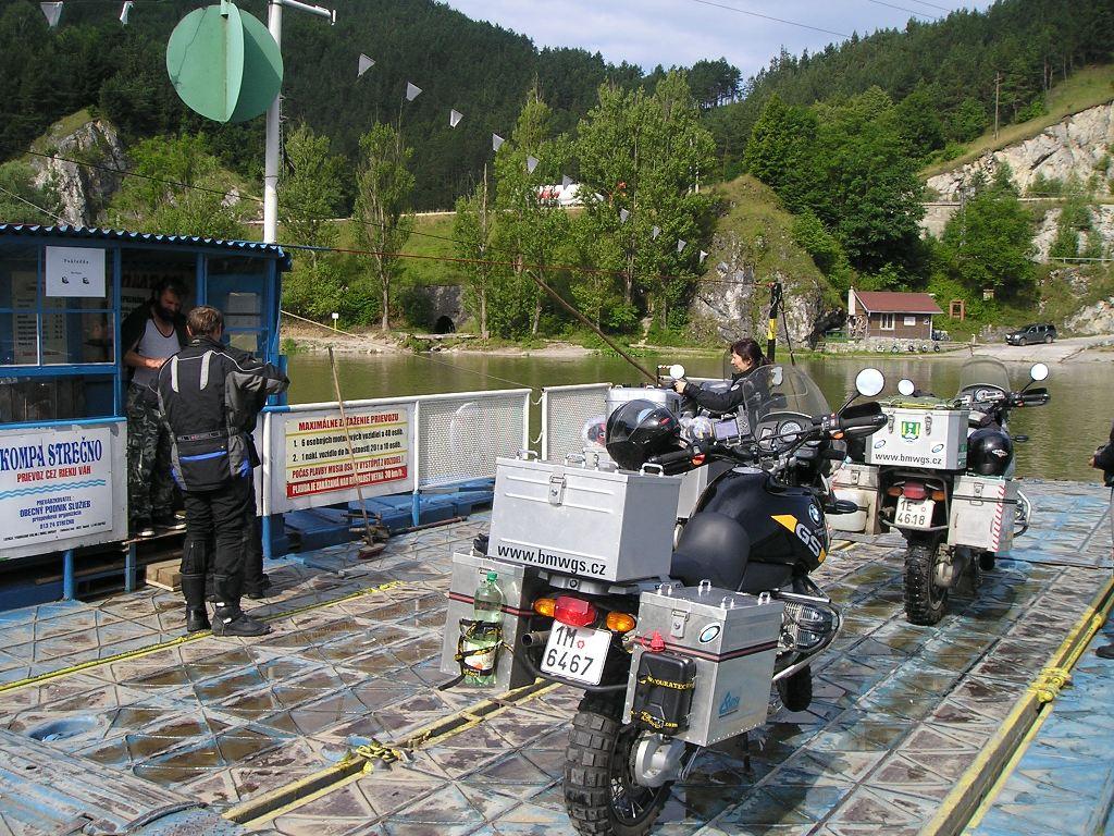 Čas odjezdu se přiblížil a nasedáme na stroje. Jedeme ke Strečnu, protože tam je kompa (přívoz) přes Váh. Jezdí každý den od 8 do 18 hodin furt sem a tam. Motorka s dvěma pasažéry stála tuším 50 korun. Od Strečna pokračujeme za pěkného počasí dál na Martin, Ružomberok, Poprad a Spišský Štvrtok, kde uhýbáme doprava na Košice přes Krompachy a Margecany. Tato cesta je podstatně hezčí než vrchem Slovenska. V obci Bystrany si můžete prohlédnout jedno z „krásných“ cikánských get. I za jasného slunečného dne tam je poměrně tma co jich tam je těch víc opálenejch spoluobčanů. Po projetí zimního lyžařského střediska Krompachy už míříme do Margecan. Tam začíná velká a zajímavá vodní plocha zvaná nádrž Ružín. Kolem ní se můžete kroutit po asfaltce přes kopec, tak jsme to jeli teď, nebo se dá jet po druhém břehu lesem, kde toho sice moc nevidíte do okolí, ale zas projedete pěkným úzkým tunelem, který sousedí s velkým a dlouhým železničním tunelem, který se jmenuje Bujanovský a vyúsťuje před železničním mostem vedoucím přes druhý konec nádrže a jmenuje se Malá Lodina. To je všechno na trati Poprad - Košice a dokonce to má i své turistické známky. Pak už pokračujeme dál přes kopečky s příjemnými zatáčkami až na kraj Košic, kde je další železniční zajímavost a to sice Dětská železnice. Kolem ní pokračujeme dál do centra Košic za naším kamarádem uměleckým kovářem Cyrilem Horákem. Naposledy jsem k němu do úplného centra města jel před 3 lety a na cestu si matně vzpomínám. Vím, že to bylo před obchodním centrum Dargov uhnout z hlavní a pak furt doprava a doleva, doprava a doleva, doprava a doleva …. No pak si už až tak jistý nejsem, tak radši volám. Zastavili jsme asi 200m od něho. Stačilo ještě dvakrát doprava a doleva, doprava a doleva.
