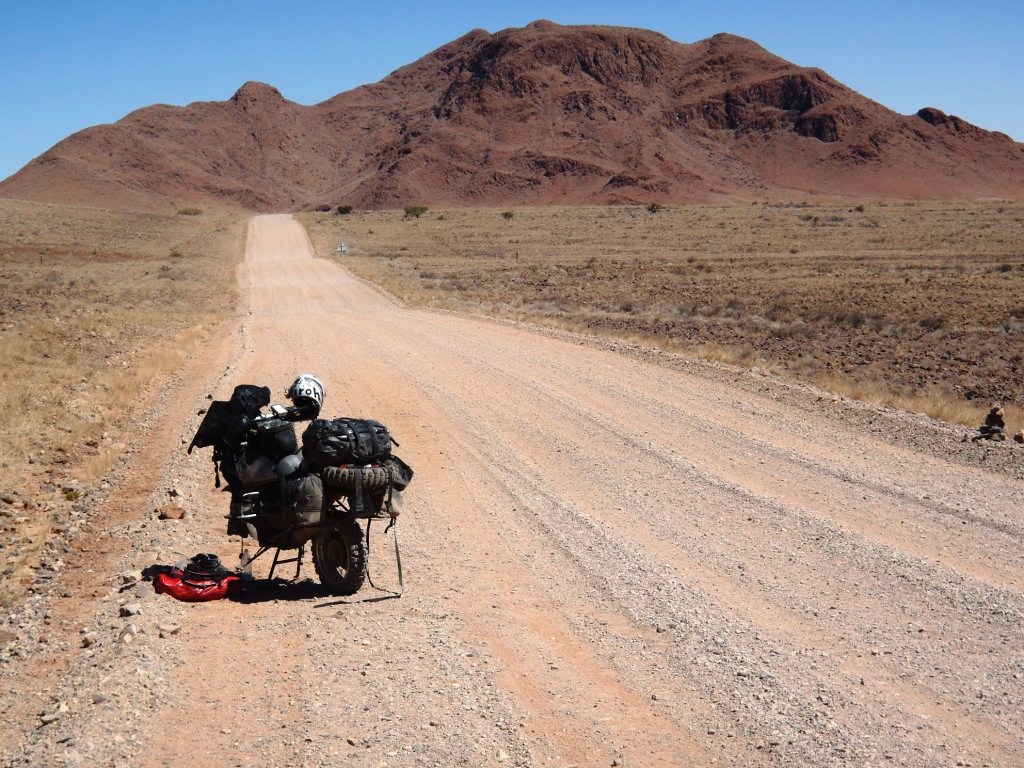 Jirka na Afriku obul na obě kola Michelin Desert a nestěžoval si. Já chybně nechal lehce ojetou Michelin Desert vpředu a tvrdě jsem s ní narazil. Nejdříve na kámen a pak jsem první dny na šotolině spravoval každý den. Duše lehce ucházela a pak se prorazila o obrubu ráfku při nájezdu na šutr. Až nákup nové TKC80 ve Windhoeku mé problémy vyřešil. Na druhou stranu musím velmi chválit zadní Mitas E09 ve verzi Dakar. Vydržela celých 10 tis. km bez jediného problému a sjížděla se pomaleji než Jirkova Desertka. Na tento typ cestování za mne jednoznačně nejlepší zadní guma, jakou jsem kdy použil.