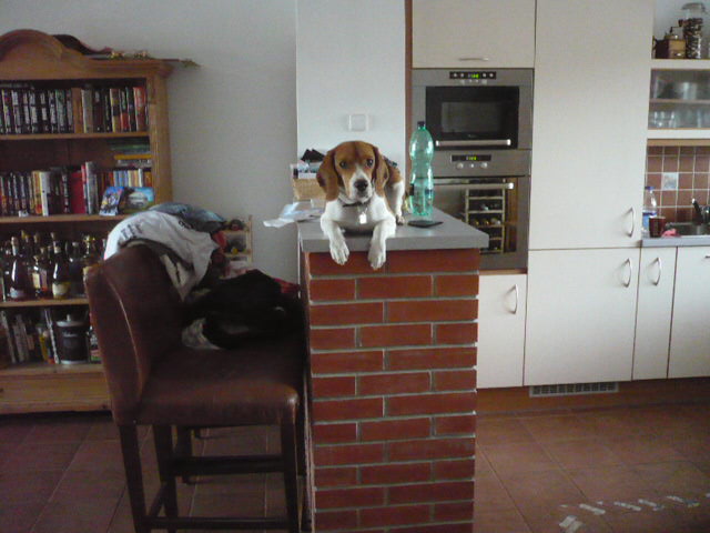 Beagle na baru čeká na drinkWink