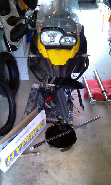 co se tyce vymeny nebylo to nic slozityho - nejvetsi zdrzovacka je pockat si az vytece olej z tlumiciho pistu - je dobre to napumpovat svisle a pak otocit a vylejt - a tak jeste mockrat :-) ted nejake zkusenosti : - podle rad od mistnich se hladina meri na vysku 120mm od vrchu pri stlacene vidli BEZ PRUZINY - tohle odpovida cca 750ml takze je to ok , druhy spek je ze utahnout kontramatku pod vickem jde kvuli hustym zavitum blbe - ale jde to , po stlaceni pruziny