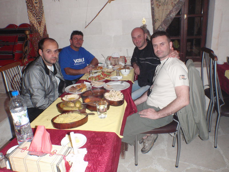 Tak nějak jsme se dostali až do Palmyry. Po menším průzkumu vybíráme hotýlek a jdeme (tentokrát poprvé všichni) na jídlo. Jídlo super a velbloudí maso superduper!