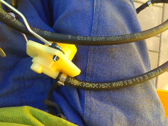 Problem se zahnutou hadickou jsem vyresil teflonovou co vypada jak husi krk, ktera se pouziva u cerpadel ponorenych v nadrzich u aut. Ohnout jen gumovou nejde, protože se zploští a nefunguje.