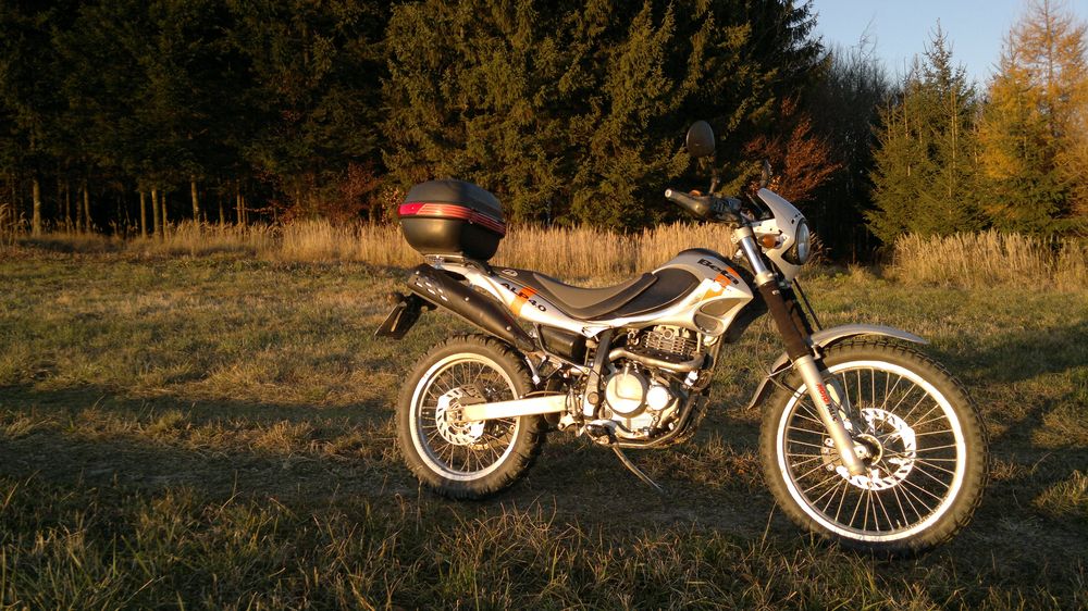 Neni to sice ostrý enduro,ale na to vyblbnutí pole-lesy atd to bohatě stačí. A hlavně servis je za babku. Olej po 10.000 km 2,4L+ filtr. Vzducháč vypereš a jen jezdíš. Dokud nepoznáš BMW,nechybí...