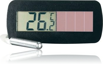 Já to vyřešil takhle. Z teploměru, co jsem už vodou x-krát vyzkratoval a chtěl ho už x-krát zahodit... Je to ten samý, co má v příspěvku #20 Bawko (cca 100,-Kč), jen jsem zkrátil ten drát a odpor napájel přímo dovnitř. (měl jsem obavy, že se změní hodnoty měření změnou odporu drátu, ale měří to úplně stejně). Celé jsem to nacpal do odřízlé krabičky od velkých TicTac (pasuje přesně, dnem vzhůru), dole stáhl stahovací páskou a funguje to super. Voda se tam nedostane a od slunka se to nerosí. Jo, je to trochu matnější, ale venku je to vidět super. Navíc si mohu nastavit sklon abych na to dobře viděl. Simply Clever. D.