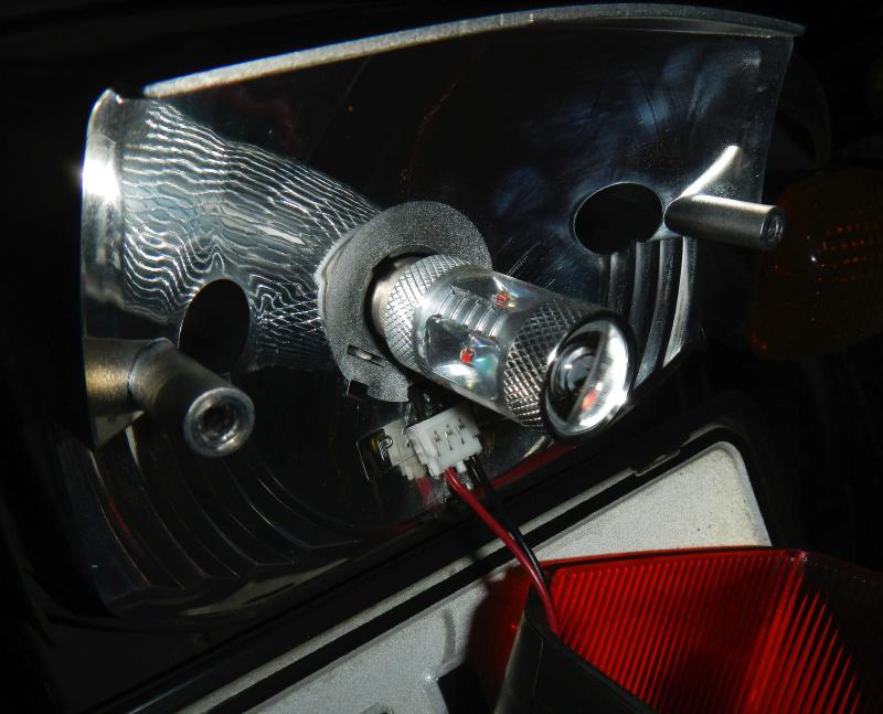Já teda jsem do orig.zadního světla vložil žárovku LED 12V-24V 21/5W BAY15d SMD 50W červená (ne bílou, to pak svítí růžově) a jsem s touto variantou spokojen, svítí to dost jedovatě, a osvětlení SPZ jsem pořešil jedním modulem LED pásku s bílými SMD diodami (s menší svítivostí) a zacloněním plast destičkou na kterém je LED pásek nalepen, aby červená neprosvěcovala na značku.