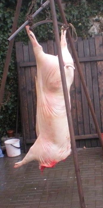 Soused měl jednou 2 selata v 3. podlaží bytového domu a na chodbě měli kameninový žlab a špalek. Prej neskutečný, co s tím dokázali dělat za bordel.