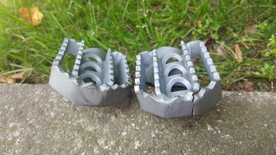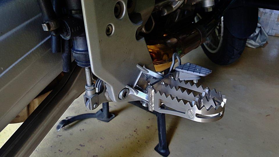 Trochu oživím téma stupaček. Rozšířím téma i na model R1100GS a popíši svou zkušenost, protože uvedené modely jsou stále IN. Měřím 183cm a originál stupačky jsou dost malé, hlavně, pokud se v nich člověk potřebuje postavit. Nechtěl jsem do rozšíření investovat a tak jsem zakoupil pouze plíšky na rozšíření. Navařil, zbrousil, nepostupoval podle návodu a při malém skoku stupačky zlomil (viz. Foto 1) Kolega postupoval při svařování správně a tomu rozšířené stupačky dobře slouží. Investice v roce 2018 - 140,- až 180,- Kč za stupačku. Každopádně takové rozšíření způsobí, že se zprvu hůře řadí, protože směrem k řadičce ubereme prostor. Dá se na to ale zvyknout a po pár jízdách o rozšíření člověk ani neví. Další alternativou je tedy výroba vlastních stupaček, jak se v diskuzi píše a potom koupě stupaček nových a ty jsem našel. Objevil jsem Ameriku a zjistil, že stupačky na R1100GS lze nasadit i na model R1150GS a R1200GS do roku 2013. Rozhodl jsem se a koupil stupačky na R1200GS od Marselus (viz. Foto 2). Výsledek je perfektní. Snížení tak o 1,5cm, prodloužení také o 1.5cm a rozšířené jsou na 5cm. Po zvednutí řidítek o 3cm se ve stupačkách stojí luxusně, na brzdu se dosáhne a řadí se také bez problémů. Zkušeností popisuji, že rozšíření stupaček má svůj smysl a jízda je pohodlnější. Dále doplním, že poznatek není pro ty, kteří ve stupačkách potřebují gumové vložky proti vibracím.