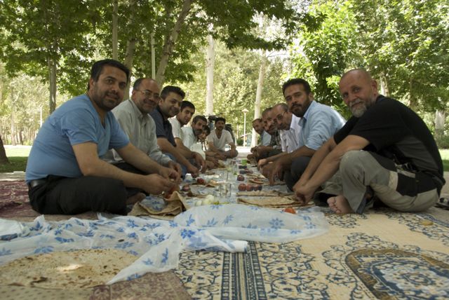 Blížilo se poledne a ti lidé ze včerejška se začali scházet, rozložili koberce, jeden navezl placatý chleb. Jiný přivezl "specialistu na kebab", třetí mi přivezl ukázat vnučku... každý něco dělal.