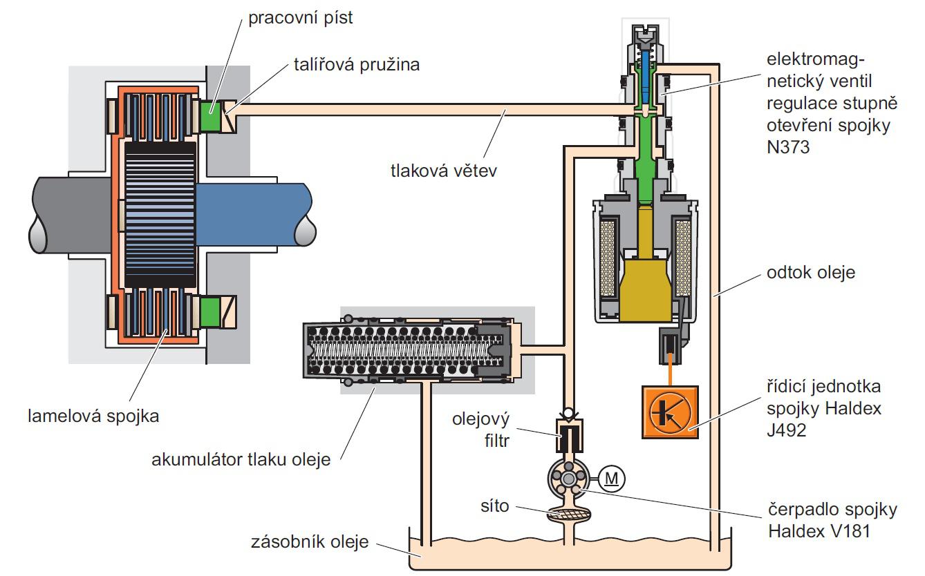 Aby se dosáhlo co nejrychlejší odezvy systému, je do spojky Haldex začleněno