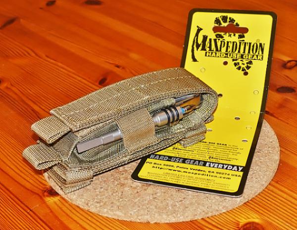 Nevydržel jsem a vzal si do práce na opasek Surge v pouzdru Maxpedition. Mimochodem se do něj vejde i ploché pouzdro na pilk/pilník a po stranách adaptér na bity a zásobník s několika bity. Pouzdro na opasku drží strašně pevně, nekýve se, nepáčí a to je i důvod, proč o něm nevím. To, že pouzdra obtěžují, není ani tak hmotností, ale že se viklají, samy se nakloní třeba tlakem kabátu a pak se zaryjí do stehna při nasednutí v autě. Volné pouzdro, které se hýbe při každém kroku, také dává cítit hmotnost setrvačnými silami při tom, jak se hýbe, zatímco o pevném pouzdru, držícím těsně u těla, které se ani nehne, vůbec nevíte a zatím to vypadá na tento případ. Ale na kvalifikované hodnocení je ještě brzo.