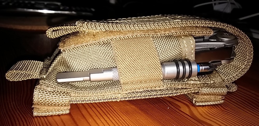 To je Tomáši neřešitelná situace. Profilů a velikostí je tolik, že na opasku mít všechny bity nelze. Já to prodávám a je toho spousta, výrobci elektroniky, hraček, domácích spotřebičů atd., používají nejrůznější šroubky a výrobci bitů reagují, 99% bitů se dá sehnat, ale v klasickém 1/4" provedení, určitě ne v plochém co má Leatherman. Máme takové sady, snad se 100 bity, nic kvalitního, ale je tam skoro všechno. A nedávno přišel zákazník s nějakým výrobkem, že ho potřebuje rozšroubovat a já tenhle profil nenašel, zase něco nového. Takže vozím v motorce (i v autě) naši minigolasadu a bity jsem v ní vyměnil tak, abych pokryl vše, co potřebuji, u multitoolu mám jen základ + pár bitů na vruty atd. Kdo chce mít všechno na opasku, pak třeba v dalším pouzdru. Mně nevadí mít vedle sebe 2 úzká pouzdra, už delší dobu chodím se zbraní na jednom boku a na druhém mám vedle sebe svítilnu a nůž nebo multitool, celková šířka cca 7 cm. Třeba Maxpedition dělá odolná a promyšlená pouzdra, i na nože a multitooly, hodí se i pro zásobníky či svítilny a mj. jedno dvojité, kde se do jedné sekce vejde multitool a do druhé bity a další příslušenství.