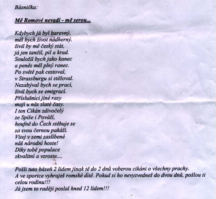 Třetí třída jede s paní učitelkou na exkurzi do kamenolomu, a když přijedou před kamenolom, brána do něj je zavřená. Tak paní učitelka začne zoufale bušit na bránu, až vyleze z nedaleké buňky hlídač a ptá se, co že se děje. Paní učitelka vysvětluje, že zde mají mít přednášku o práci v kamenolomu, na to ji hlídač odpoví, že tu nikdo není a přednáška nebude. Po chvíli přemlouvání paní učitelky, přemluví hlídače k tomu, že přednášku o práci v kamenolomu přednese dětem hlídač. A ten začne: Toš děcka, toto za mnů je taková skála pojebaná, do té se najebů takové pojebané díry, do těch děr se najebe dinamit, ten tu skálu pojebanů rozjebe na takové velké jebance, ty se pak jebnó do lisu, ten do nich jebe a jebe, až je rozjebe na prach, z teho prachu se pak najebů takové panely pojebané, ty se jebnů na tatry, ty je odtud odjebů na stavěniště, tam se z těch panelů najebů paneláky, no a v těch panelákoch pojebanéch se potom jebe, jebe, jebe a jebe, až se najebů takcí malí pojebanci, kteři mě o půl deváté probudijů a nevijů, jak se jebe do kameňa.:-)
