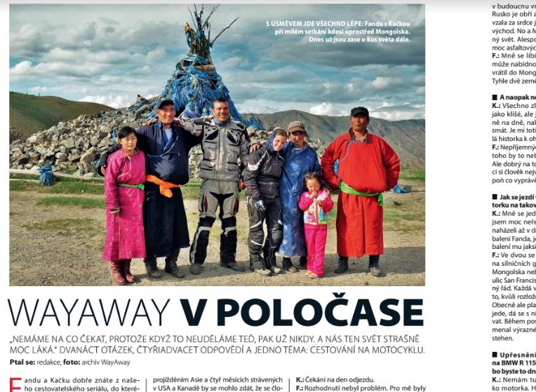 Máte už dost shánění dárku, stromečku, kapra, uklízení, pečení a dalších věcí, které musíte do Štědrého dne stihnout? Dejte si pauzu! Kupte časopis Motocykl. Zašijte se s ním třeba do postele, do vany, na záchod, do kavárny, nebo prostě tam, kde budete mít chvilku jen na sebe a přečtěte si rozhovor o tom jak prožíváme naší výpravu. Třeba v něm najdete odpovědi na otázky, které byste nám rádi položili. :-)