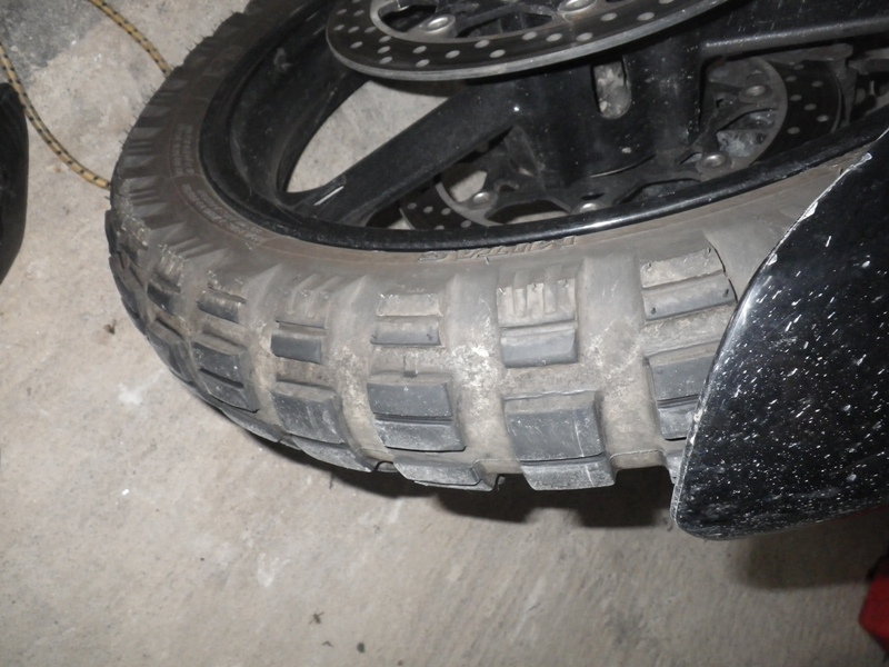 Je pravda, že nová guma je nervózní na podélných nerovnostech a při naložené motorce (plně) se má tendeci ke kmitání řídítek u GSA s celkovou váhou cca 450kg tak od 130ti u DL650 která byla méně naložená od 140km/h. Postupem najetých km to mizí na cestě zpět už se to neprojevovalo vůbec.