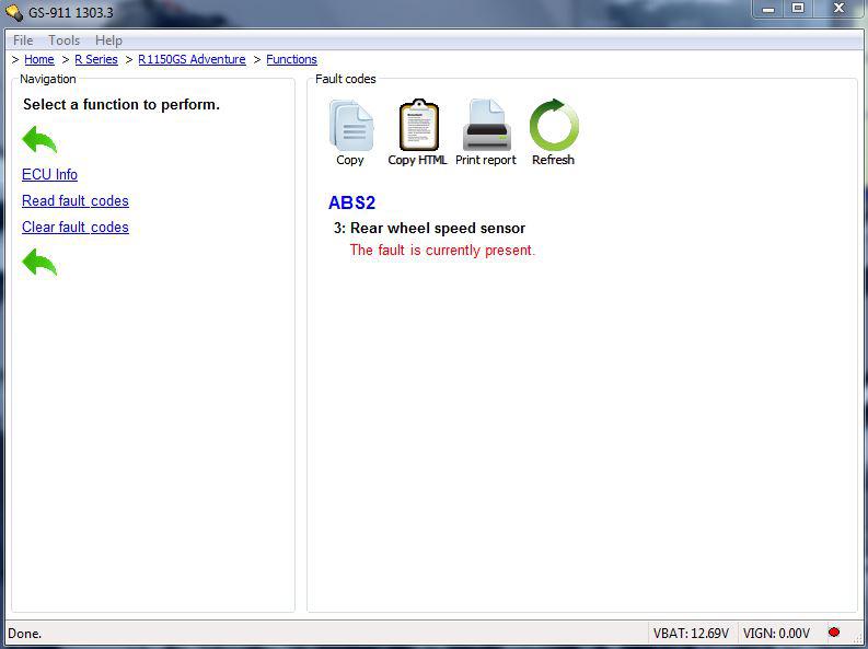 nez to vsechno rozvrtam, napred se zeptam tady ... treba uz to nekdo resil. Problem jsem zacal registrovat pri konstantni jizde okolo 50 km/h. Z pod nadrze se ozyva podobnej zvuk jako kdyz se aktivuje ABS pri rozjezdu. Pocitove bych rekl, ze si pri tech zvucich pribrzduje zadni kolo. Nakonec se objevi chyba - kontrolky blikaji stridave. Vypnuti, zapnuti klicku - kontrolky blikaji soucasne a ABS zas jde. Po chvili stejnej prubeh problemu. Pripojil jsem tedy k GS-911 a ta hlasi (viz. obrazek) problem v senzoru zadniho kola. Je teda sensor opravdu mrtvej nebo se blizi jeho smrt? Pripadne hledat chybu jinde?