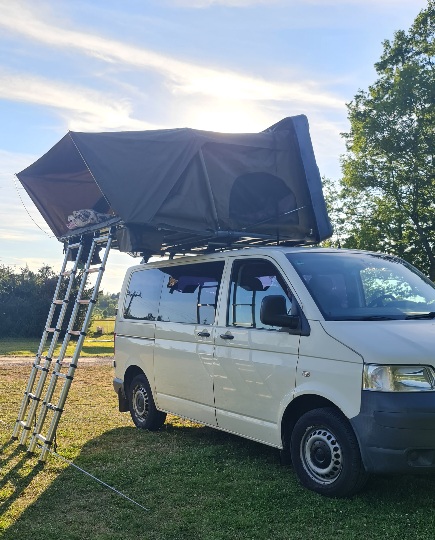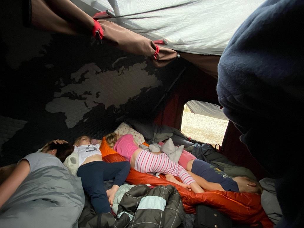 Ke statické nosnosti střechy bych měl jednu fotku . Je to zmiňovaný I Kamper 4.0 ve složení 2+4 (slovy dva dospělí a čtyři malý děti) trochu sado maso, ale dvě, tři noci se dají vydržet. Je to rychlý, skladný a stan se skořepinou vydrží i solidní bouřku bez povodně.