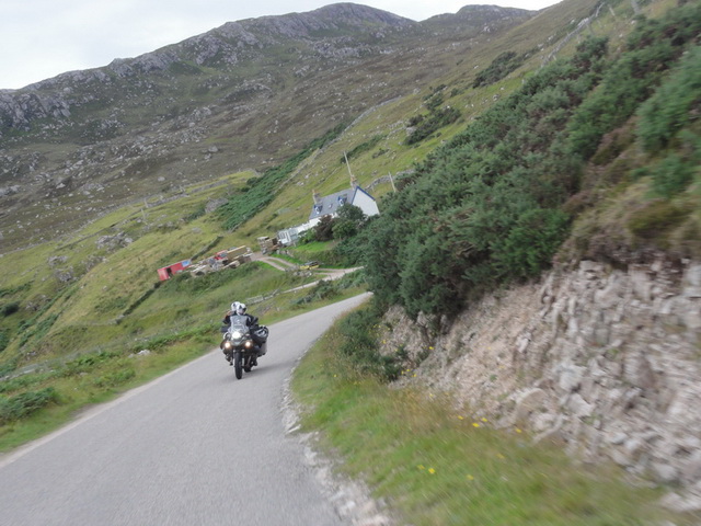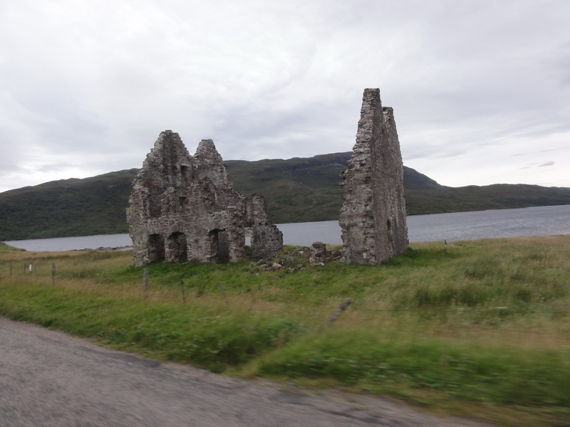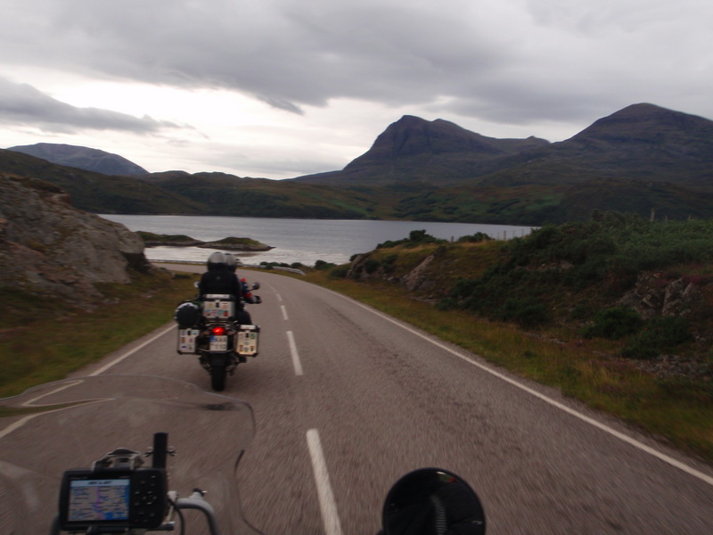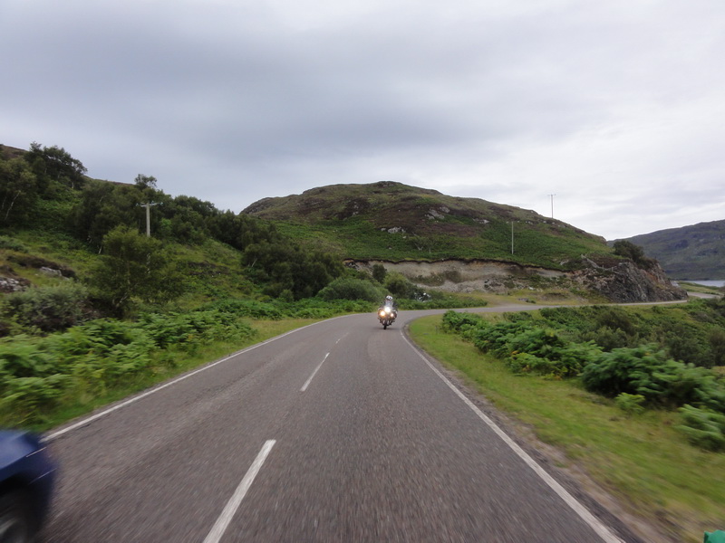 Když se stáčíme směrem na jih, stále podél pobřeží, slunce sice zachází, ale neprší a cesta je členitá, ale šikorá. Takhle si představuji Norsko, což mi zcela přesně potvrzuje i Thanasis, který loni byl v Nordcappu. V podstatě stejná krása jako projíždějíc Atlantic Road. Zastavujeme na občerstvení typu fish and chips and beer. Poté pokračujeme na jih, do cíle dnešního dne, do Ullapoolu. Jedeme již velmi svižně, prázdné silnice, široká asfaltka a užíváme si rychlé jízdy krásnými scenériemi. Asi jako v Norsku, ale jede se nalevo a bez obav o kousavé pokuty. Skotsko není stát, kde policie buzeruje meřením a vybíráním pokut. Jezdí se celkově rychle, ale přiměřeně stavu silnic. Určitě rychleji než přikazují předpisy, ale ne nad logiku. Musím říct, že jsme se cítili v celém Skotsku na silnicích bezpečně, nikdy nás neohrozil nějaký hloupý sváteční jezdec. Nikdy jsme se necítili ani ohroženi, ani omezováni, ani zpomalováni. A to za minimálního dohledu policie. Přesto provoz je silný, hlavně v létě jsou všude turisté, to je poznat podle návštěvních míst, jinak přes den jsou dost roztroušeni po celé silniční síti. Někteří courají po vnitrozemí Highlands a okolo jezer, jiní jsou na pobřeží.