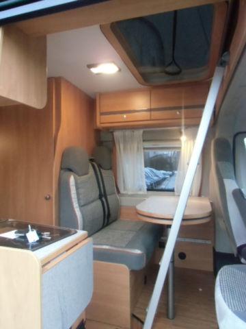 - otočné přední sedačky za nimi další 1-2 sedák a mezi tím sklápěcí stolek se mi jako hlavní obývací prostor a jídelna líbí, používá se často. Prostor auta je malý a využít jako součást obýváku přední sedačky je téměř nutnost. Už se mi ale nelíbí, že přední menší lůžko (často pro děti) se rozkládá právě v tomto prostoru, protože když jde dítě spát, zlikviduje tím možnost posezení zbytku výpravy, navíc je někdy lůžko tak velké, že se nedá projít zvenku dozadu.