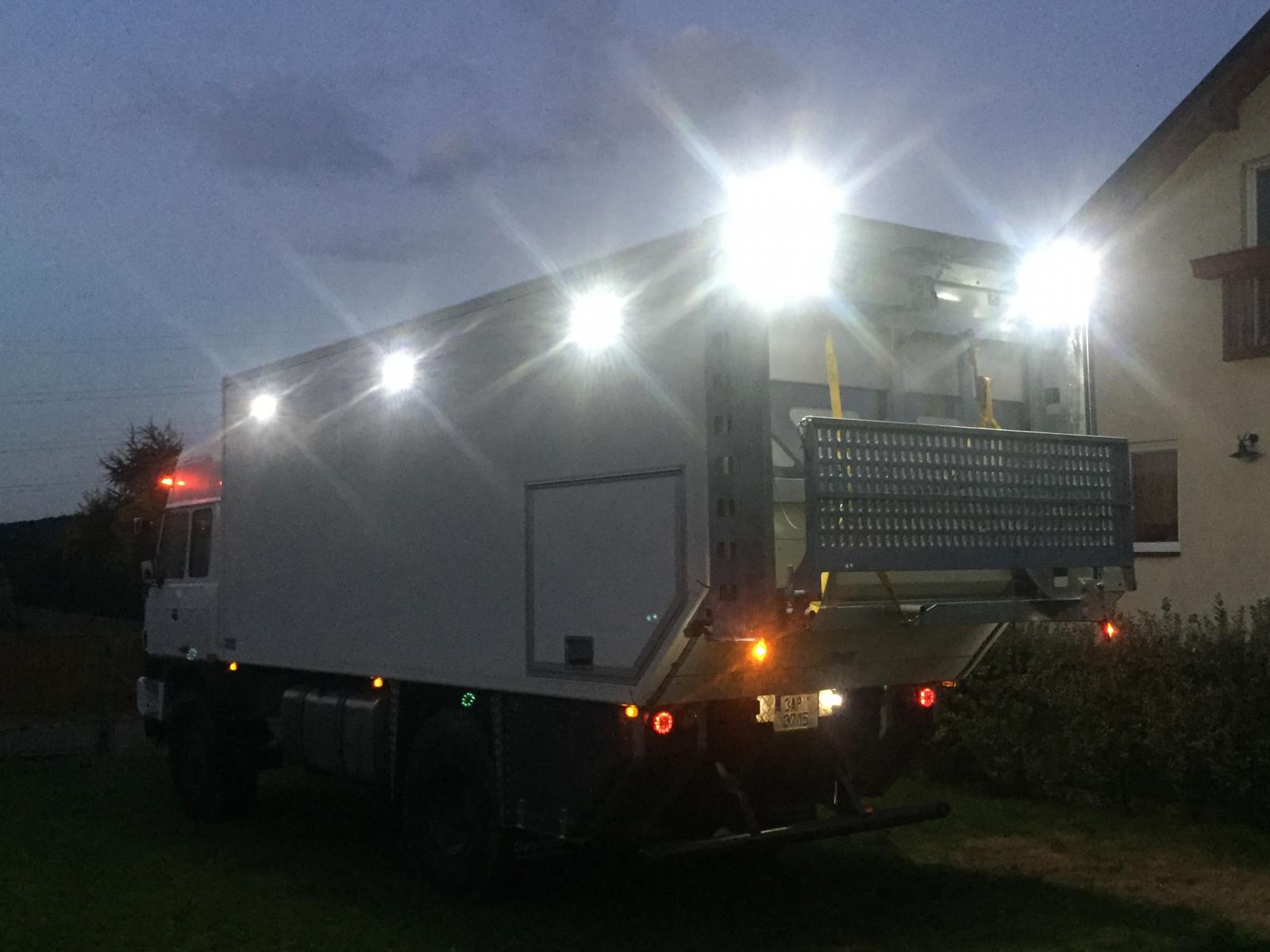 Správně, bežné pozičky jsou i vzadu na te plošině a to co svítí jsou pracovní světla k osvětlení okolí vozu. Rozsvěcí se pravá i levá strana zvlášť a zadek také samostatně třeba na couváni je to super kdyz vidíš i kolem vozu a ne jen za nej...