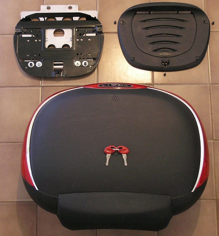 Nikde žádná prasklinka, všechny mechanismy bezchybné, oba orig. klíče, vše ke snadnýmu namontování je součástí. Samotný kufr je z takovýho toho kvalitního pevnýho a zároveň pružnýho plastu - žádný kyblíkový plast. Nikde nic nedrnčí, nevibruje, velikost a tvar je myslím optimální, vejde se do toho dost věcí na běžný i delší ježdění a je to pěkně zaoblený a nemá to zbytečně velkej odpor vzduchu.