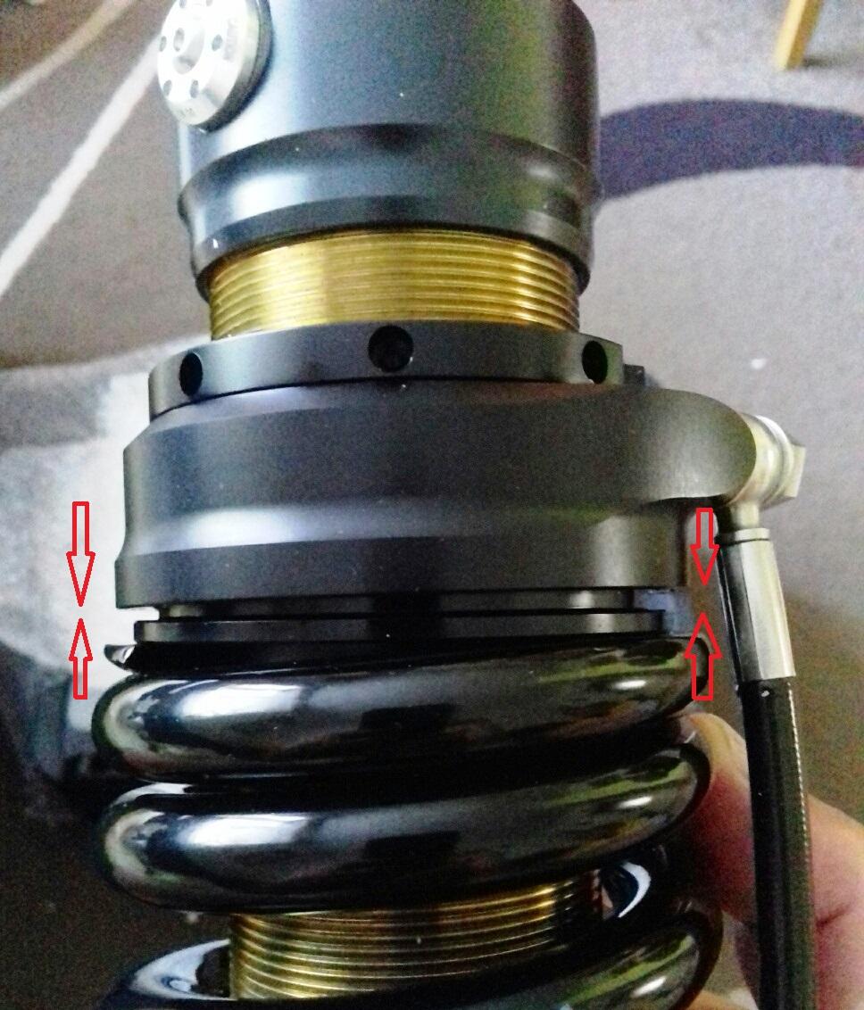 Ahoj. Koupil jsem nový zadní tlumič na 1150gs a všiml jsem si následující věci. Když přitvrzuji pružinu přes hydroštel, prstenec který se vysunuje a opírá o pružinu se vychýlí cca o 1,2mm viz foto. Při povolení předpětí na max si prstenec sedne k tělu hydroštelu do roviny. Při utažení se vychýlí.