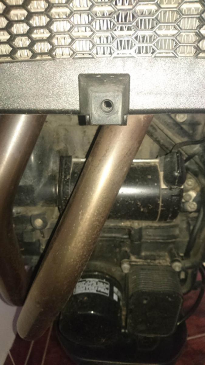 Čus motorkáři, potřebuju od vás radu, koupil jsem BMW GS 800, r. v. 2016 a všimnul jsem si u chladiče, kde je uchycena spodní část ventilátoru, se nachází díra, ale bez žádného zajištění vis. foto. Je to normální, že tam nic není, nebo tom přijde šroub, popřípadě plastová příchytka? Jak to máte na vašem GS 800? Díky.