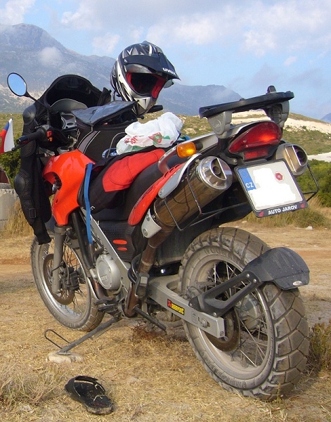 Myslím, že to nevypadá špatně Wink, jen je potřeba dodělat nějaké samodomo vzpěry, aby brašny neležely na vejfukách.