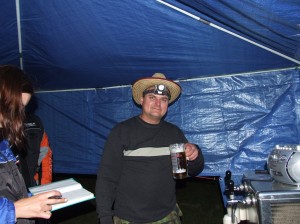 Na odbočce již vidím velmi vkusně zhotovenou šipečku, pak druhou, třetí míjím a troubení za mnou mně upozorňuje na můj omyl. Copak mně napadlo že ten čerstvě posekaný trávník je příjezdová cesta k louce, na níž se srazík koná? :-)). Stavím Zobču vedle kolegů a rozhlížím se. Registruju asi 10 stanů, asi 15 motorek, převážně různých BMW GS 1XXX. Vítá mně Cycli, po chvilce Miloš, vidím Hajnýho, Čizáka, Romanu.... víc lidí neznám a doufám, že je tady poznám.