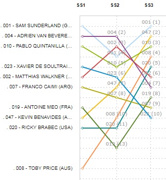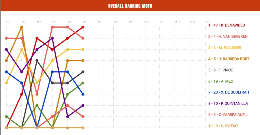 Famózně dnes jel opět Barreda Bort. Byl na 1. místě na všech dnešních WayPointech a po předchozím velkém propadu je již na 4. místě. Celkové vedení uhájil Van Beveren.