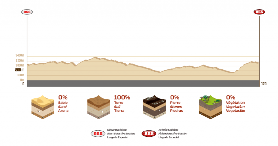 Závodníci se opět dostali do nadmořské výšky přes 3 tis m.n.m. a většinu rychlostní zkoušky tvořil písek a velbloudí tráva.