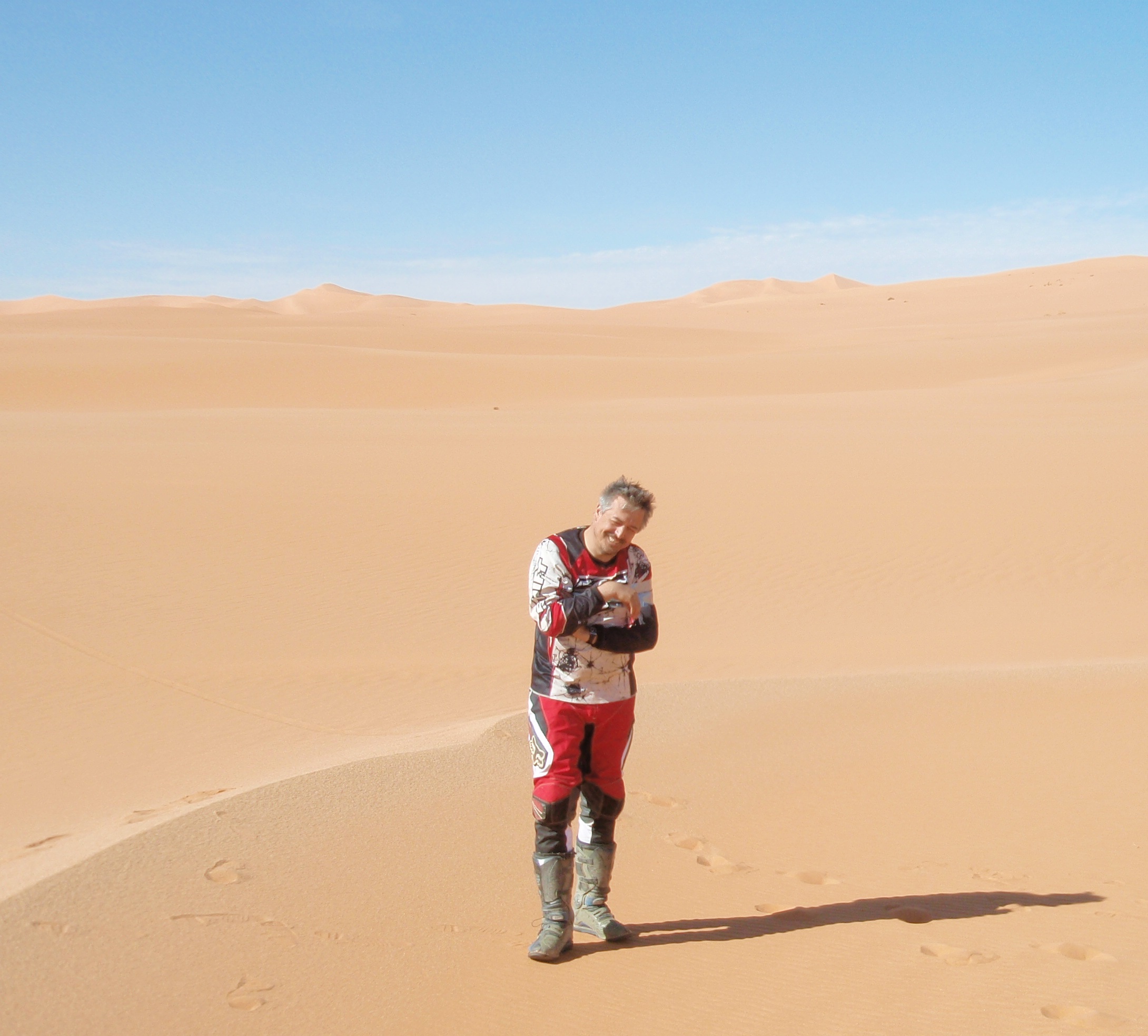 Pozn. Já sám jsem musel jet na motorce se zlomenou klíční kostí asi 30 km v dunách v Murzuq Sand See v Libyi u hranic s Čadem a bylo to dost náročný.