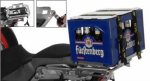 Teď už nebude problém najít dobrovolníka na dovoz piva po dlouhém dni v sedle! Náš pivní nosič dělá z této činnosti zábavu - převoz basy piva již nebude nepříjemná a riskantní operace, kdy bylo potřeba vyvažovat motorku s jednou rukou na řídítkách a druhou zachraňovat padající basu ze sedadla spolujezdce nebo převážet pivo po částech v tankbagu nebo kufrech. Tento výrobek je příklad toho, co si může dovolit vymyslet opravdu inovační vývojové oddělení v Touratech továrně. Profesionální řešení i těch problémů, které ne každý řeší. Vaše cestování bude mít perfektní večerní závěr. Nosič má rozměry 30x40cm a je vhodný pro basy 20x 0.5l / 24x0.33l (doufám že rozměry české basy jsou podobné). Upevnění na standardní nosič je pomocí systému Rapid Trap. Možnost montáže na všechny nosiče topcase ZegaPro. Nosič zabraňuje klouzání basy do stran. Lahve jsou z horní strany zajištěné pěnovým víkem a celá basa je upevněná dvěma popruhy Zega Belt, které jsou součástí dodávky.
