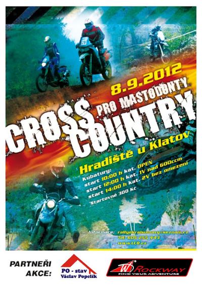 Všechny Vás srdečně zvu na 2. ročník Cross Country pro mastodonty do Hradiště u Klatov. Závod se uskuteční 8.9.2012. Kdo byl vloni, ví oč jde. Pro ostatní, vše rád objasním. Letošní trať bude podstatně delší a rychlejší. Prostě postavené trochu víc pro mastodonty. To, ale neznamená, že půjde o lehkou písemku. Většina už má pozvánku ve svém emailu. Prosím všechny, kteří mají chuť se přihlásit, ať mě kontaktují na rallyekralsumavy@seznam.cz nebo na tel.: 605 255 443