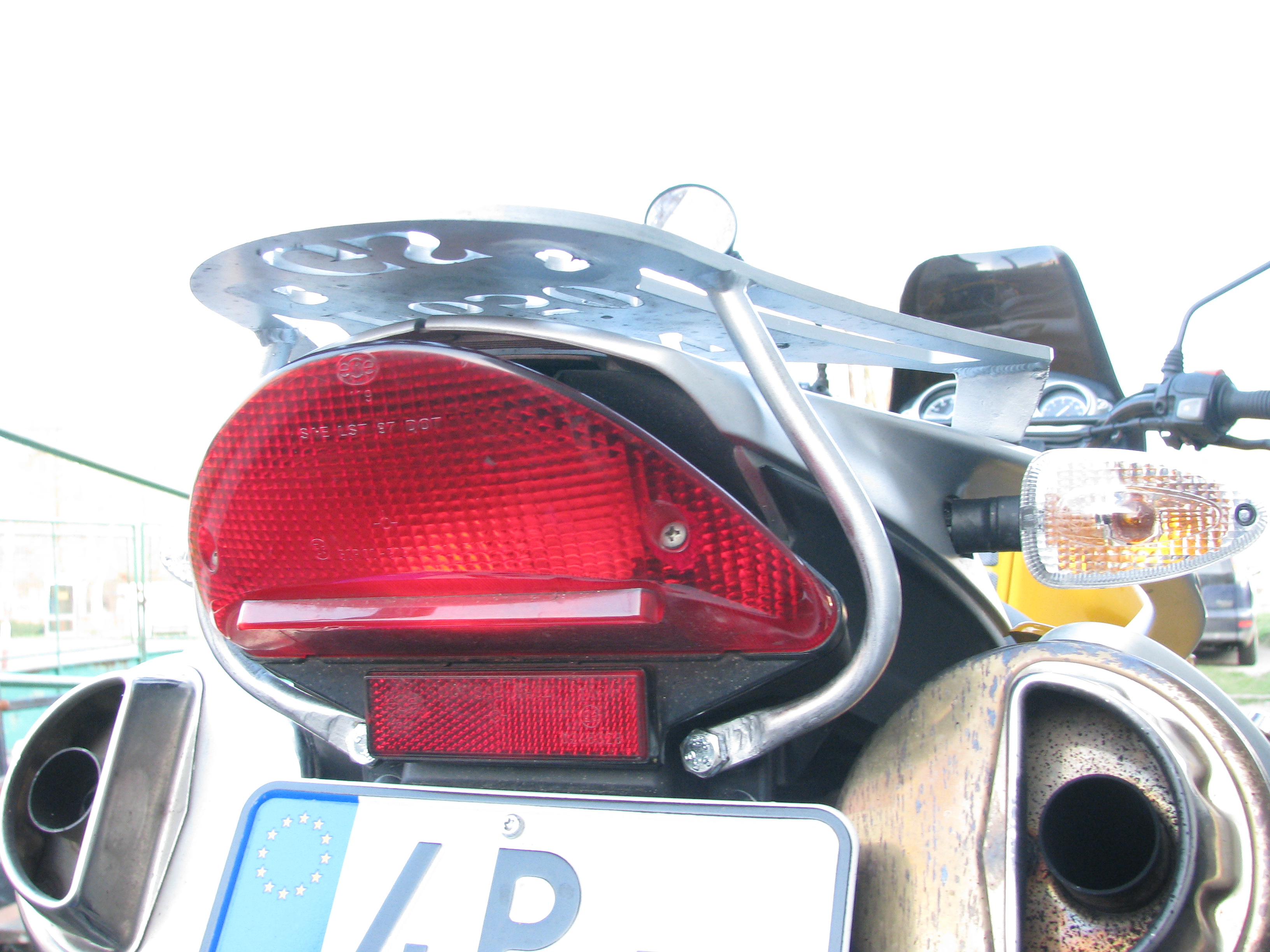 V zadu je přichycena ke stávajícímu rámu . Pod držákem plotny jsou válečky, ty po vyšroubování šroubu vyndám a plotnu zasunu po směru jízdy, tím se uvolní přední držák a mohu plotnu sundat.
